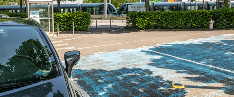 Des places réservées pour les personnes à mobilité réduite avec une CMI « stationnement » sont positionnées à proximité des accès aux distributeurs de titres de transport.